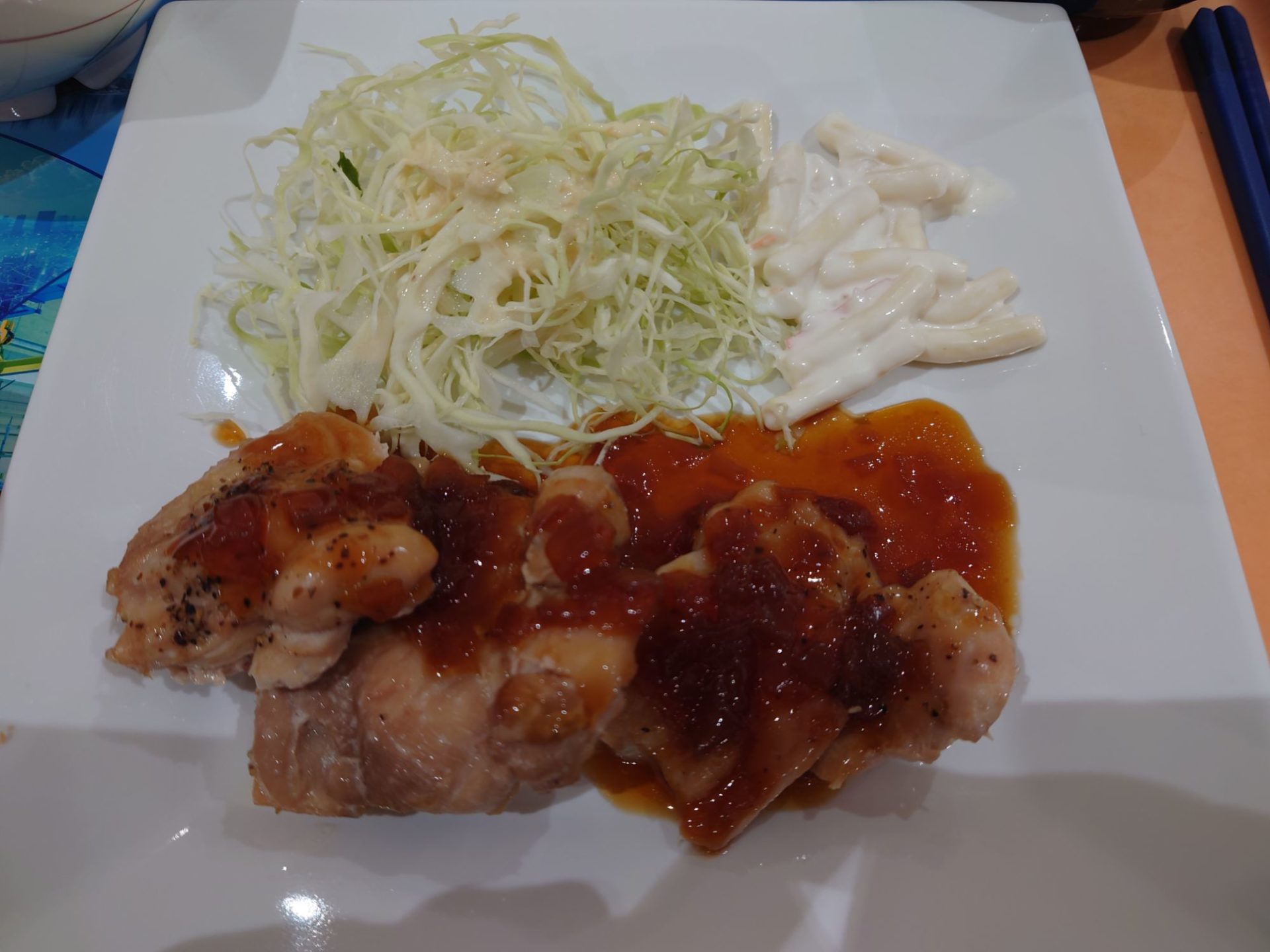 カレーと迷ったがチキンのほうはサラダがついていたからこっちのほうがヘルシーな気がした。