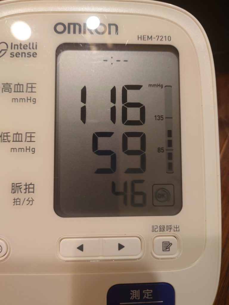 血圧測定忘れていて夕食後に測ったら、