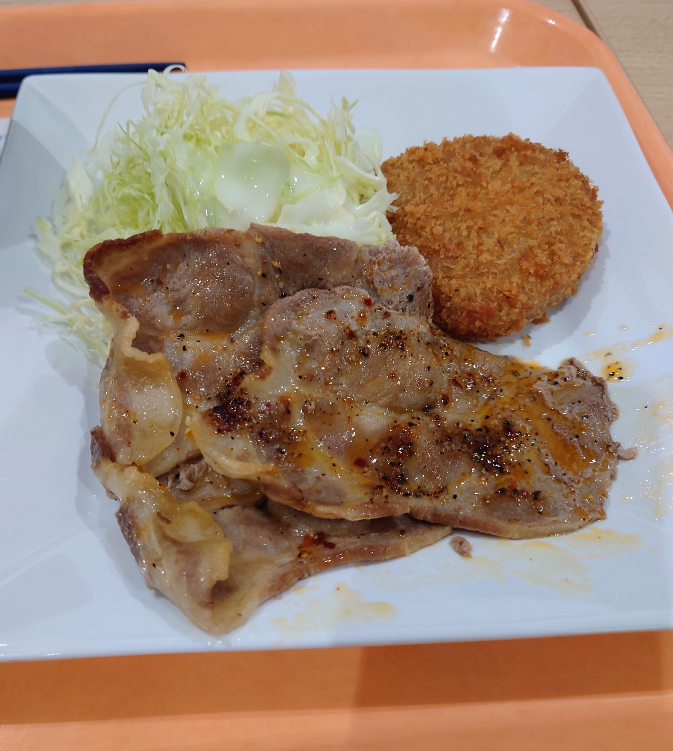 今日のお昼はポークソテーとコロッケね。