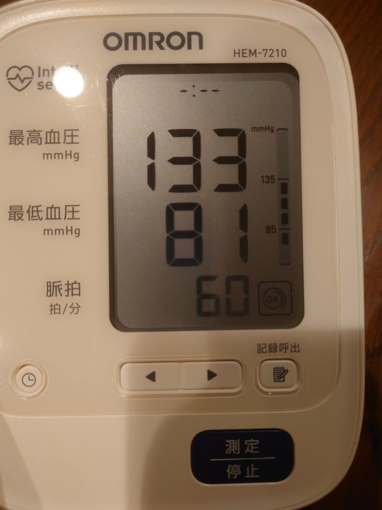 特別健康になった気はしないが、1か月ほとんど変化なかった血圧がこの2日間いい感じに落ち着いている。
