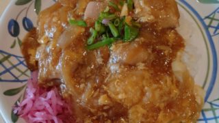 このメニューは以前にも食べたことがありおいしくてお気に入り。揚げた豚肉に甘酢のあんかけ。じゃっかん酢豚っぽい。けどそこまで酸っぱくないしちょっと違う。でもどちらもおいしい。サラダとシュウマイとお味噌汁も付いて大満足ランチでした。